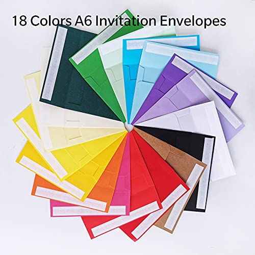 Specification: 108 Sets 18 Colors A6 Invitation Envelopes Peel & Seal Self-Seal 4 3/4 x 6 1/2 Envelopes with Blank A6 Folded Cards…