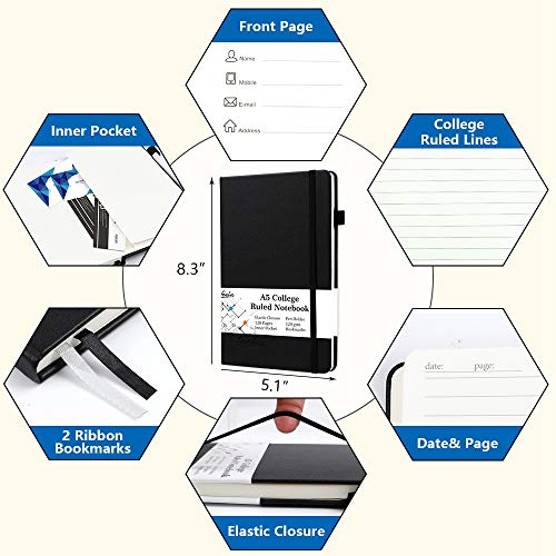 These college ruled notebooks are all blank inside with 128 lined pages (64 sheets), which would be convenient for daily usage. The hard cover journal has a water-resistant faux leather cover, round corners and bookmarks, which is designed to lay and open flat. There’s a “date/page” column on the top of every page. You can use it as a reminder to let you remember those important dates and find the page you want in a very short time.