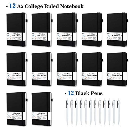 Specification: 12 Pack Notebooks Journals Bulk with 12 Black Pens, Feela A5 Hardcover Notebook Classic Ruled Journal Set with Pen…