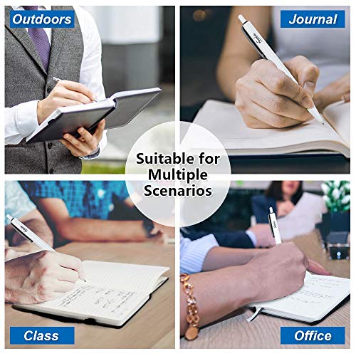 There are 12 Black Retractable Pens in the box. You can use it as soon as you receive it. These pens are perfect to be put in the pen holder of the college ruled notebook. Large tube has the capacity of restoring more ink, which makes them long lasting. Quick drying can avoid smearing and smudge.