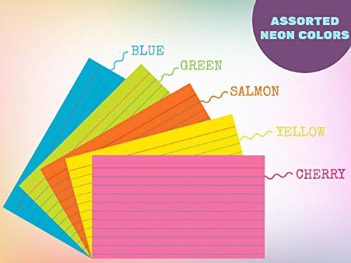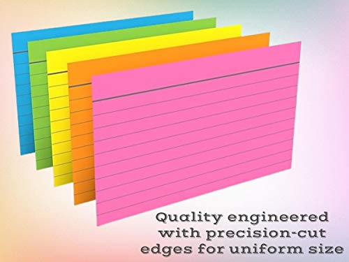 1InTheOffice Ruled Neon Index Cards, Index Cards 3×5 Assorted Neon Color, 300/Pack
