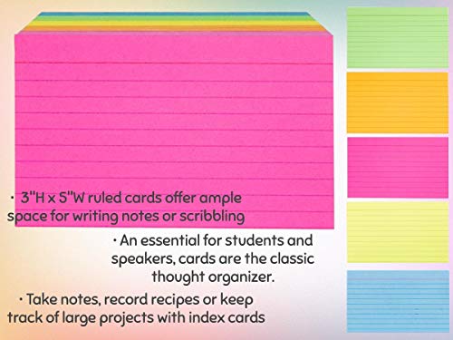 Specification: 1InTheOffice Ruled Neon Index Cards, Index Cards 3×5 Assorted Neon Color, 300/Pack