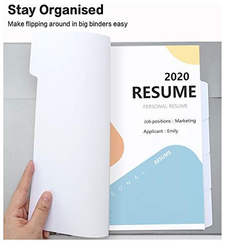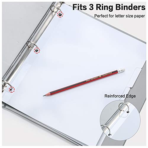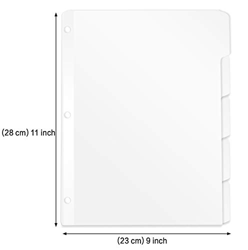 PERFECT FOR LETTER SIZED PAPER: Three-hole punched to fit a standard binder; sized for 9″ x 11″ sheets to provide maximum coverage for your sheets. Keep your notes, files, recipes, or printed copies protected with these dividers with tabs.