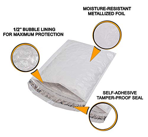 PREMIUM QUALITY: Made from a durable, moisture resistant, multi-layer blend of co-extruded polyethylene film. They are five times thicker than the average shipping mailer, and lined with a thick 1/2″ bubble. This extra high profile bubble material provides additional protection for fragile ecommerce shipments such as hardcover books, textbooks, tablet PCs, e-readers, cell phones, ipads and other electronic components. Heavy-duty mailers with exceptional tear strength and cushioning performance.