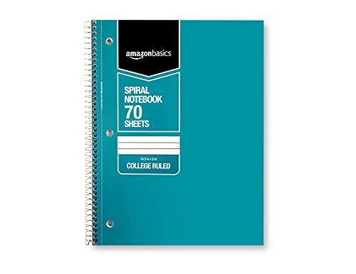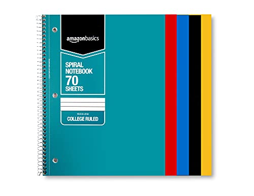 Specification: Amazon Basics College Ruled Wirebound Spiral Notebook, 70-Sheet – 5-Pack, Assorted Solid Colors