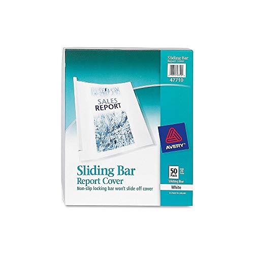 Avery Clear Report Covers with Sliding Bars, White Binding Bars, Holds up to 20 Sheets, 50 Report Covers (47710)
