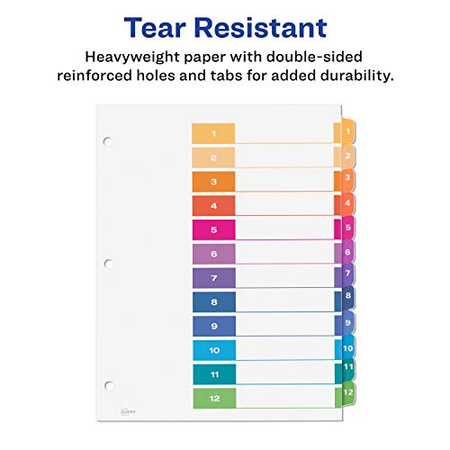 Specification: Avery Ready Index 12-Tab Binder Dividers, Customizable Table of Contents, Multicolor Tabs, 6 Sets (11196)
