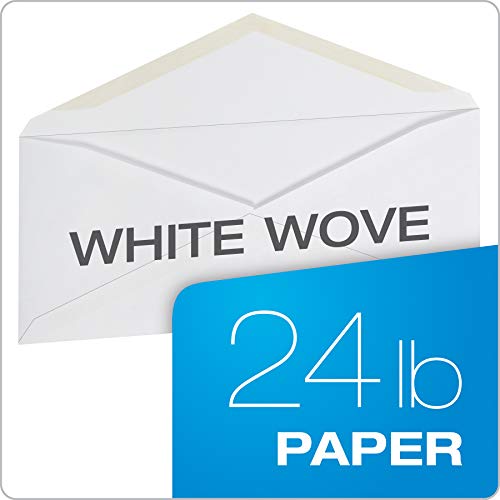 Executive Style diagonal seam V-flap construction; premium 24 lb. white wove stock; moisture activated gummed seal
