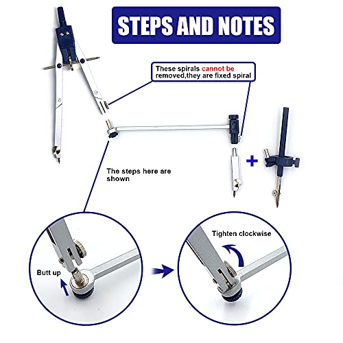 Professional Drafting Compass Tools:With Universal Adapter and Extension Beam For Math, Geometry, Art, Drafting And Drawing.By turning the middle of the screw to adjust the opening and closing compass. You can accurately set the size of the circle you need and hold it