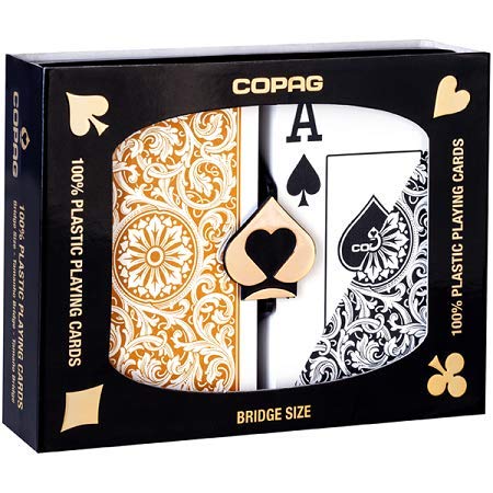 Specification: Copag 1546 Design 100% Plastic Playing Cards, Bridge Size Black/Gold (Jumbo Index, 1 Set)