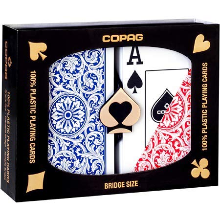 Specification: Copag 1546 Design 100% Plastic Playing Cards, Bridge Size Red/Blue (Jumbo Index, 1 Set)