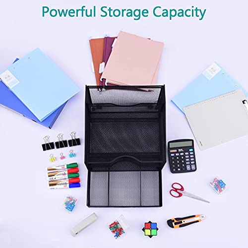 Desk Organzier Mesh Office Supplies Organization with Drawer File Accessories Storage Workspace with 4 Compartments for…