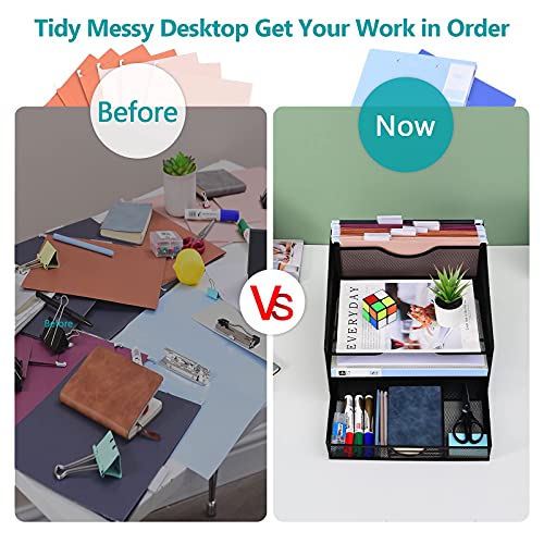 desk organizer and office supplies—【REVERSIABLE & MULTIFUNCTIONAL】— when it is lying down, you will have more horizontal space; when it is standing up, you will get a organizer shelf and have more vertical space. Ideal for office supplies, office storage, office accessories, file organizer, also as a desk organization and paper pen shelf holder in home.