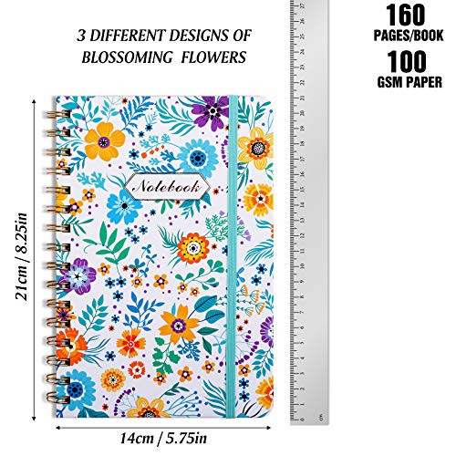 EOOUT 3 Pack Spiral Notebook, Journal for Women, Hardcover Spiral Journal, 6″x 8.5″, 160 Pages, Cute Blooming Floral, Back Pocket, 100gsm Paper, for Gifts, Office, School Supplies