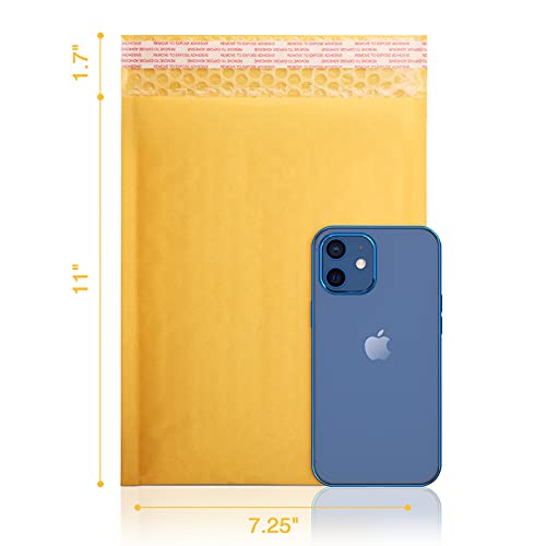 Fu Global 7.25×12 Inches Kraft Bubble Mailers Padded Envelopes #1 Pack of 25 Fabulous for shipping a wide variety of items.Self Sealing Bubble Mailers provide outstanding low cost shipping protection.Upgrade your company image and ship with confidence with these self-seal mailers.Maximize shipping success while reducing costs.These popular padded envelopes are sturdily built with thick bubble lined wall construction for extra protection during transit. Shipping labels adhere securely to the kraft cover so the incidence of lost packages is reduced.Padded Envelopes #0Specifications:Size of bubble mailer envelopes:Outside size: 7.25×12 inch.usable size: 7.25×11 inch.Package: 25pcs/bag. Color: Yellow.