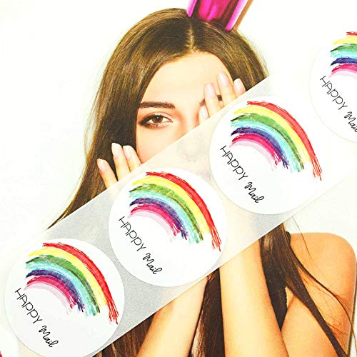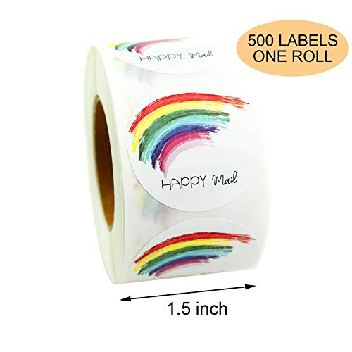 Specification: Happy Mail Stickers and Envelope Stickers – 1.5 inch 500 Rainbow Stickers Per Roll for Small Business Supplies, Mailing…