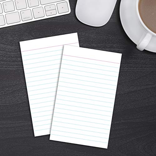 DETAILS: (50 pack) 3” x 5” double sided, blue lined note cards with header portion at top of card. Lines printed on thick 14PT heavy duty un-coated white card stock paper for writability.