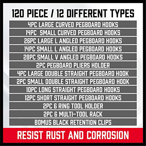 Specification: HORUSDY 120-Piece Pegboard Hooks, Pegboard Accessories, Pegboard Hooks Assortment for Organizing Various Tools