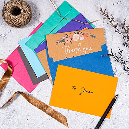 MULTIPLE COLORS TO MIX AND MATCH: Envelopes come in pink, mint green, gray, indigo, purple, sky blue, and orange hues for you to match your inserts and create the perfect invitation suite.