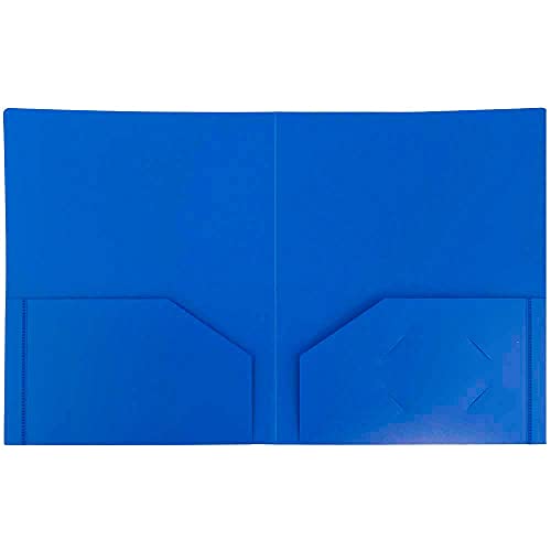 JAM PAPER Heavy Duty Plastic 2 Pocket School Folders – Blue – 6/Pack