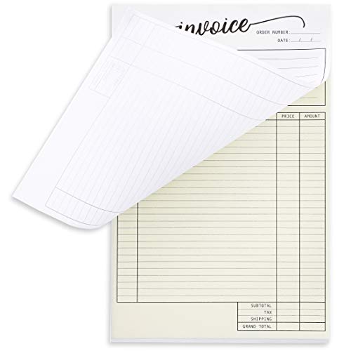 Includes 2 carbonless invoice order form pads that is ideal for small business use. Blank covers are customizable to add company labels or stamps. Easy to write on with pens, pencils, and ball point pens. 8.5 x 5.5 inches. 45gsm carbonless paper, 100 sheets per pad (50 sheets of carbon paper) with glued binding