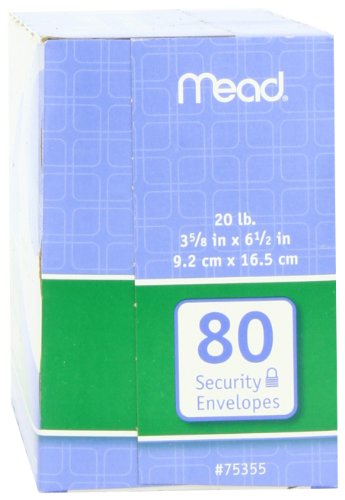 Specification: Mead #6-3/4 Envelopes, Security Printed Lining for Privacy, Gummed Closure, All-Purpose 20-lb Paper, 3-5/8″ x 6-1/2″, White, 80/Box (75212)