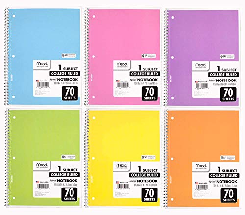 I Bulk Pack of 6 Large Mead single subject Spiral bound Notebooks college rule, save and buy a Case by the bulk.