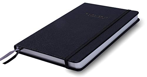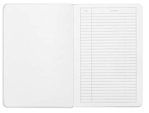 The notebook also includes a Table of Contents for easy reference, a durable elastic strap for fast closure, matching ribbon bookmarks and an expandable inner pocket inside the rear cover.