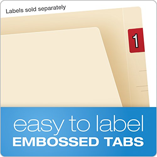 Pendaflex Reinforced Manila End-Tab Fastener Folders have two bonded 2″ fasteners to hold important papers in place. Polylaminate strips along the spine prevent bursting and splitting, even when overstuffed. Folders provide a durable option for growing open-shelf files. Straight-cut tabs are embossed and scored to guide perfect label placement. Letter size, 11-pt. manila. 50 Per box.