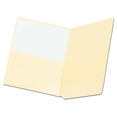 Keep loose papers, memos, business cards, CDs, disks and other related materials secure in the pocket on the inside front panel. Punched for easy fastener insertions. Double-ply straight end tabs for open shelf filing systems. Letter size. 11 pt. Manila stock.