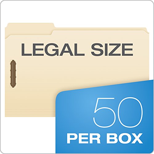 Pendaflex Manila Fastener Folders have reinforced tabs for durability. Two 2″ embedded fasteners provide instant organization. Keeps busy files neat and tidy in and out of the file drawer. Guide Height. Legal size, 1/3-cut tabs, assorted positions. 50 Per box.