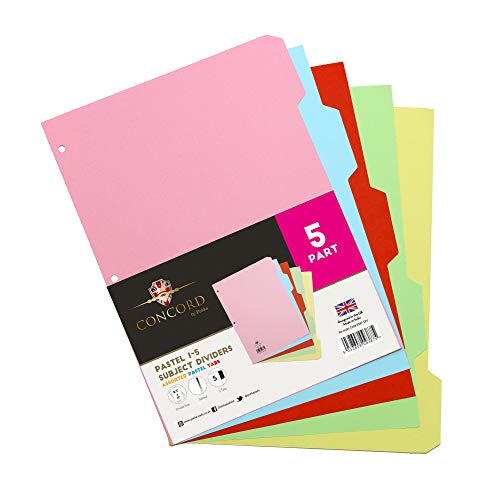 Pukka Pad Concord 5 Part Dividers – 1 Pack of 5 Tab Set, 3-Ring Binder Compatible, 8 1/2 x 11 Inches – Pastel Colors