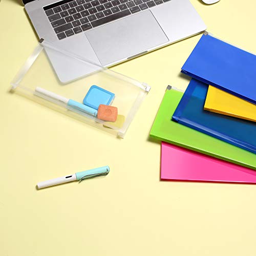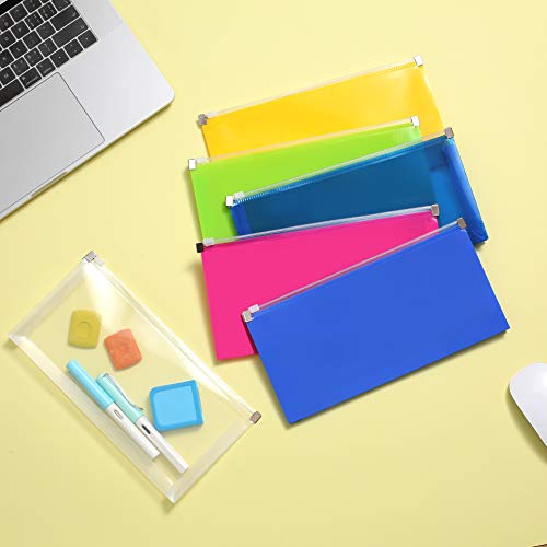 Purida Plastic Envelopes for Paper with Zipper Closure, 5 x 10″ Poly Envelopes with 1 1/5″ Expansion for Home Office School Organization in 6 Assorted Colors