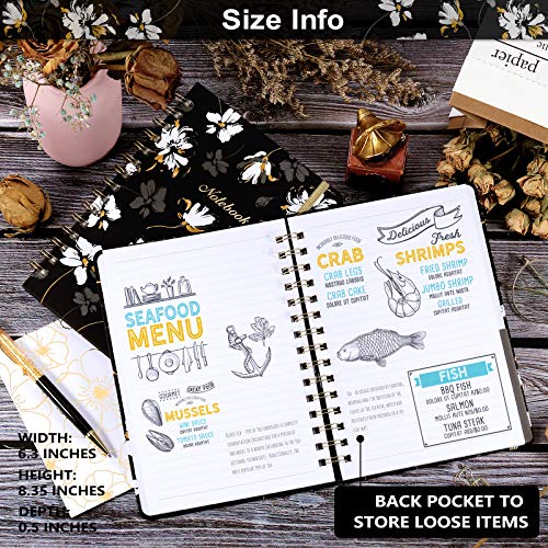 ?HARDCOVER JOURNAL – The college ruled journal is 8.5″ X 6.4″ (Including spirals) with premium white pages. It features round corner for easier carrying, sturdy back pocket for small items, and a elastic closure band to keep your notebook close. The gorgeous flower cover makes it more individualized.