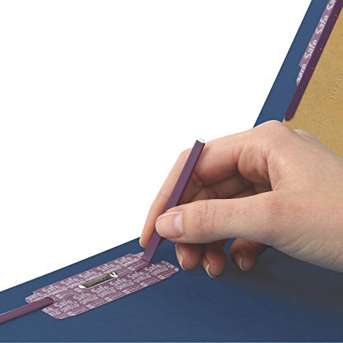 Minimize the time you spend searching for documents and increase the efficiency of your shelf filing system. Smead’s End Tab Pressboard Classification File Folders with SafeSHIELD Fasteners and 2 dividers make it easy to organize your critical information by providing 6 different filing surfaces that can be used to separate your documents in subcategories and keep them in proper sequence. Purposefully designed to provide a solution for the most common fastener issues, our SafeSHIELD Coated Fasteners help you avoid hand injuries, ripped papers and excessive fastener crinkling. The 2” expanding gusset made of tear resistant material offers greater storage capacity for bulky projects. For additional convenient document storage, consider applying one of our Poly File Retention Jackets (68191 – sold separately) to add documents without punching them. Proudly made in the USA, these 25 pt. heavy pressboard file folders contain 100% recycled content, 30% post-consumer material and are SFI Sourcing Certified. Available in letter or legal size and assorted colors to make color coding your files easy. • A Rich Heritage of Innovation and Quality. A world-leading provider of solutions for efficient document management, Smead is a woman-owned company well-known for its high quality, environmentally responsible products and innovative organizational systems. For more than a century, Smead has been committed to one purpose: Keeping You Organized!