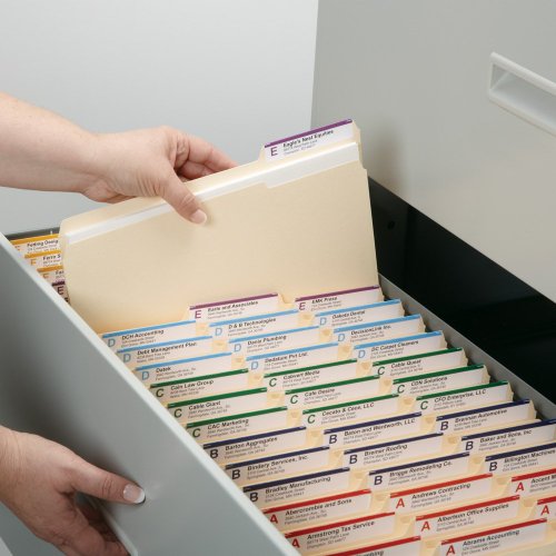 Includes 50 legal size folders (14-5/8″ W x 9-1/2″ H). Each folder has a reinforced 1/3-cut tab in assorted positions