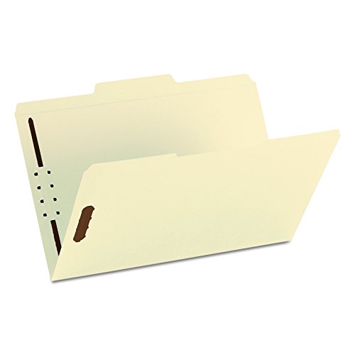 Keep papers secure and in order, even when folders are handled by lots of people and transported out of the office. Subdivide documents with ease. Create two separate filing surfaces with fasteners on the front and back panels. Two 2″ prong K style fasteners per folder in positions no. 1 and no. 3. Great for everyday use! Made of 11 point sturdy paper stock. Each folder is scored for 3/4″ expansion. Includes 50 legal size folders (14-5/8″ W x 9-1/2″ H). Each folder has a reinforced 1/3-cut tab in assorted positions. Proudly made in the USA. Contains 10% recycled content, 10% post-consumer material and is SFI Sourcing Certified.