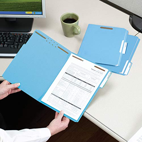 Specification: Smead Fastener File Folder, 2 Fasteners, Reinforced 1/3-Cut Tab, Letter Size, Blue, 21 per Box (12050)