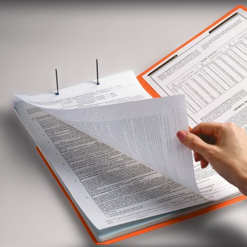 Using fastener folders guarantees that documents will stay secure and in order within the file.