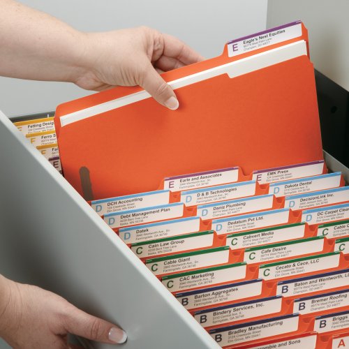 Use the variety of brightly colored folders to categorize folders by customer, project or file type.