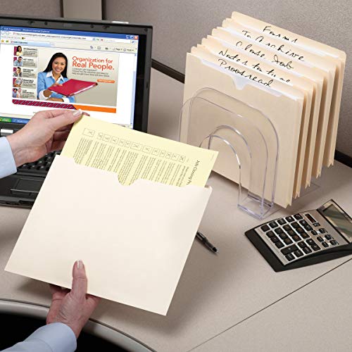 Includes 100 letter size (11-3/4″ W x 9-1/2″ H) manila file jackets (flat-no expansion) with full height sides for document security and reinforced straight-cut tabs for extra durability