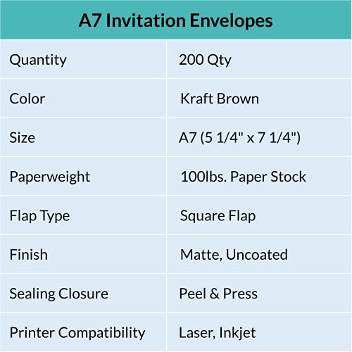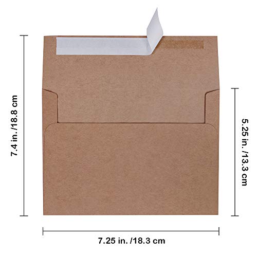 Specification: Supla 150 Pcs A7 Invitation Envelopes in Brown Kraft Peel & Seal Self Seal 5 1/4 x 7 1/4 Envelopes 100lbs. Paper Stock…