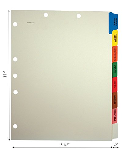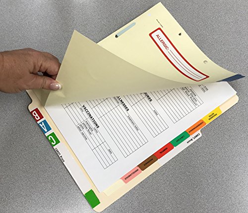 Eight side tab, pre-collated sets include seven of the most popular medical index titles used today, Plus one writable tab. Dividers are made of sturdy, 90 lb. Manila stock. Tabs are reinforced with tear proof color Mylar. Tab titles include “history & physical” (Blue), “progress notes” (Yellow), “correspondence” (Orange), “lab/x-ray” (Green), “hospital” (Red), “insurance” (Brown), and “miscellaneous” (Pink). set also includes a blank tab.