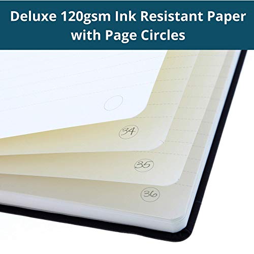 ✔️THICK 120GSM PAPER MAKES IT A DREAM TO WRITE IN: 160 pages of premium 120 GSM ruled / lined paper that is fountain pen friendly. Resists ink bleeding and ghosting.