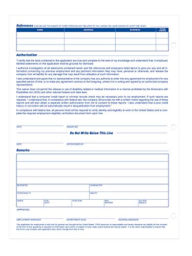 TOPS Employment Application Form – 50 Sheet(s) – Gummed – 11″ x 8.50″ Sheet Size – White – 2/Pack