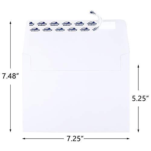 【Premium 100 Pack White A7 Invitation Envelopes 5X7 Inches】Envelope dimensions are 5.25 x 7.25 inches. Perfect for A7/5×7 weddings, birthdays, baby showers, graduations and all sorts of party invitation cards. Stuff the envelopes with photo’s, CD’s, cards or whatever else you need. Valbox kraft envelopes come in a nice storage box.