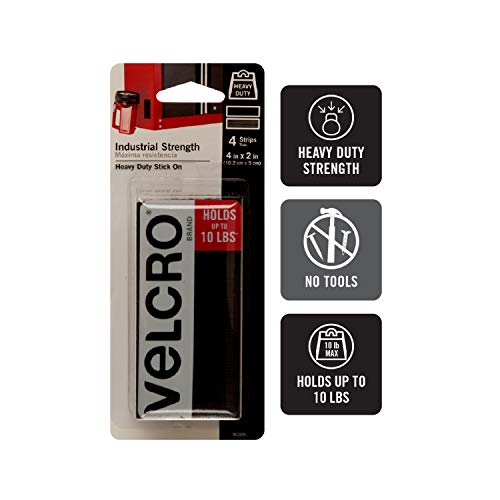 Specification: VELCRO Brand Heavy Duty Fasteners | 4×2 Inch Strips 4 Sets | Holds 10 lbs | Stick-On Adhesive Backed | Black Industrial…