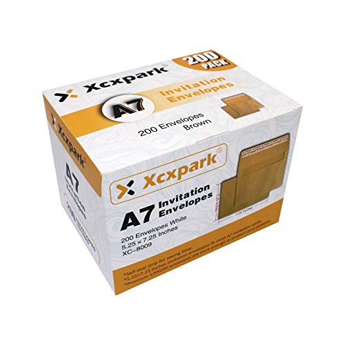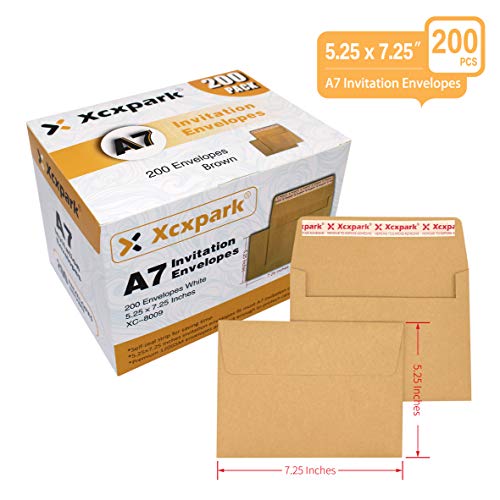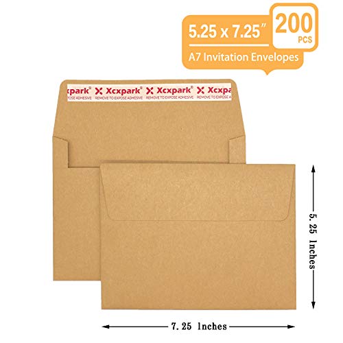 Specification: Xxcxpark 200 Qty Printable A7 Invitation Envelopes 5.25 x 7.25 Inches Cards, Self Seal 120GSM Brown Kraft Paper…